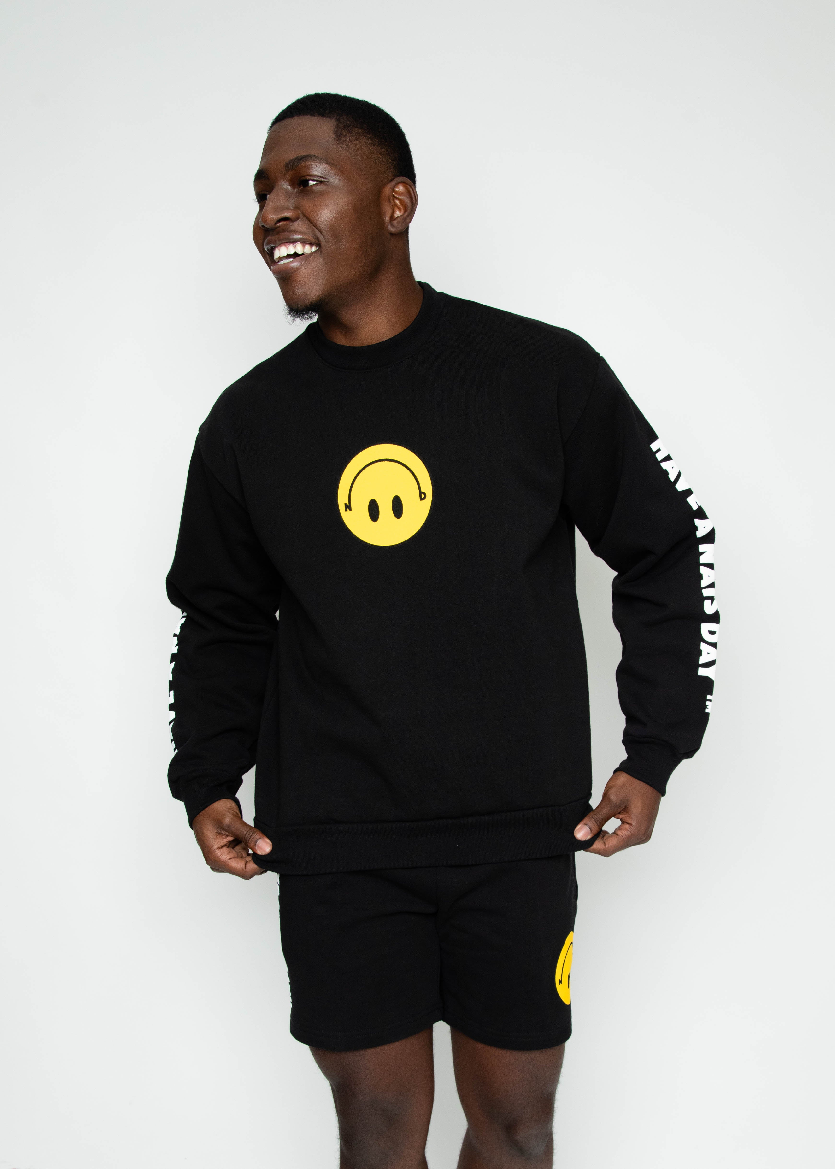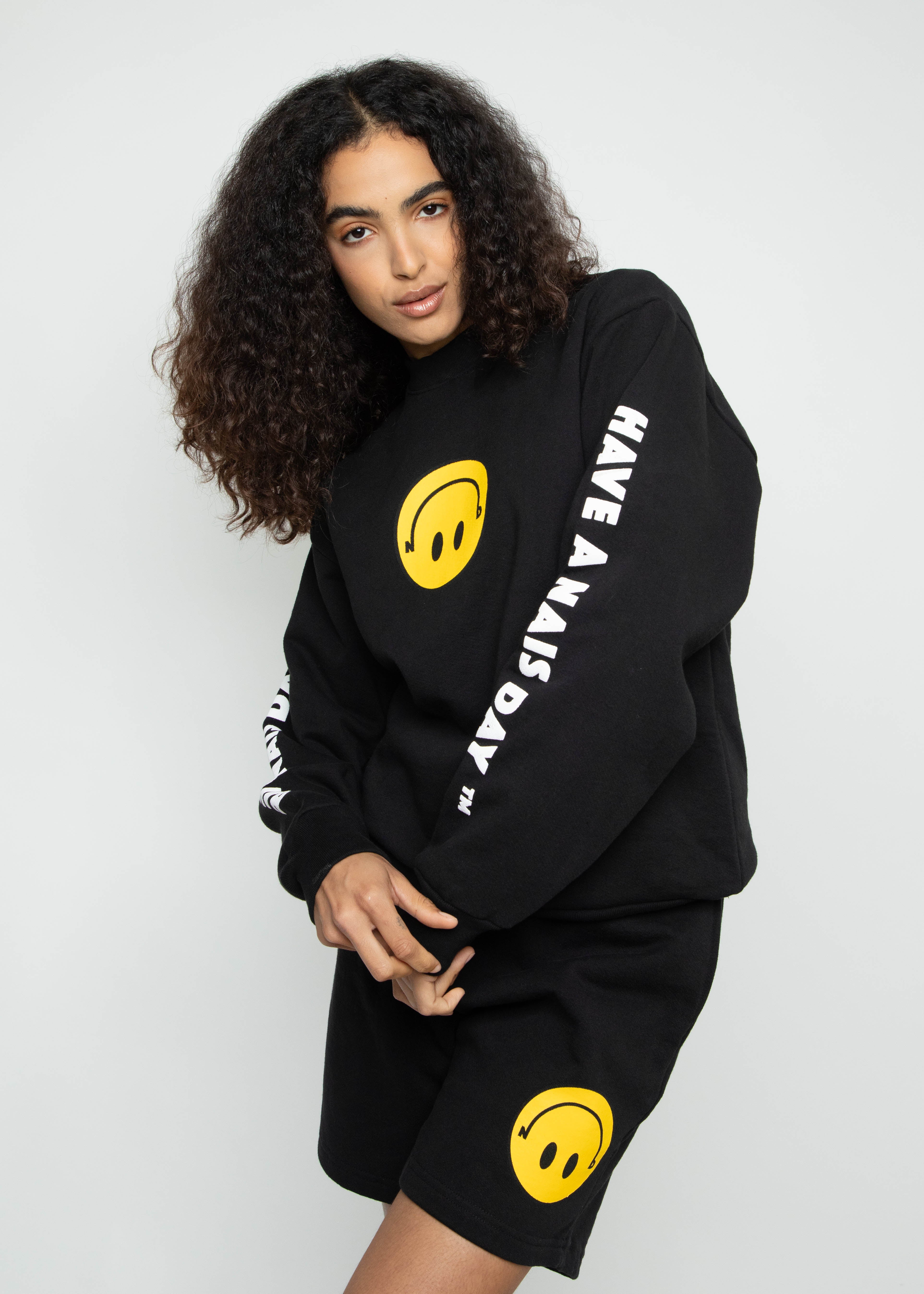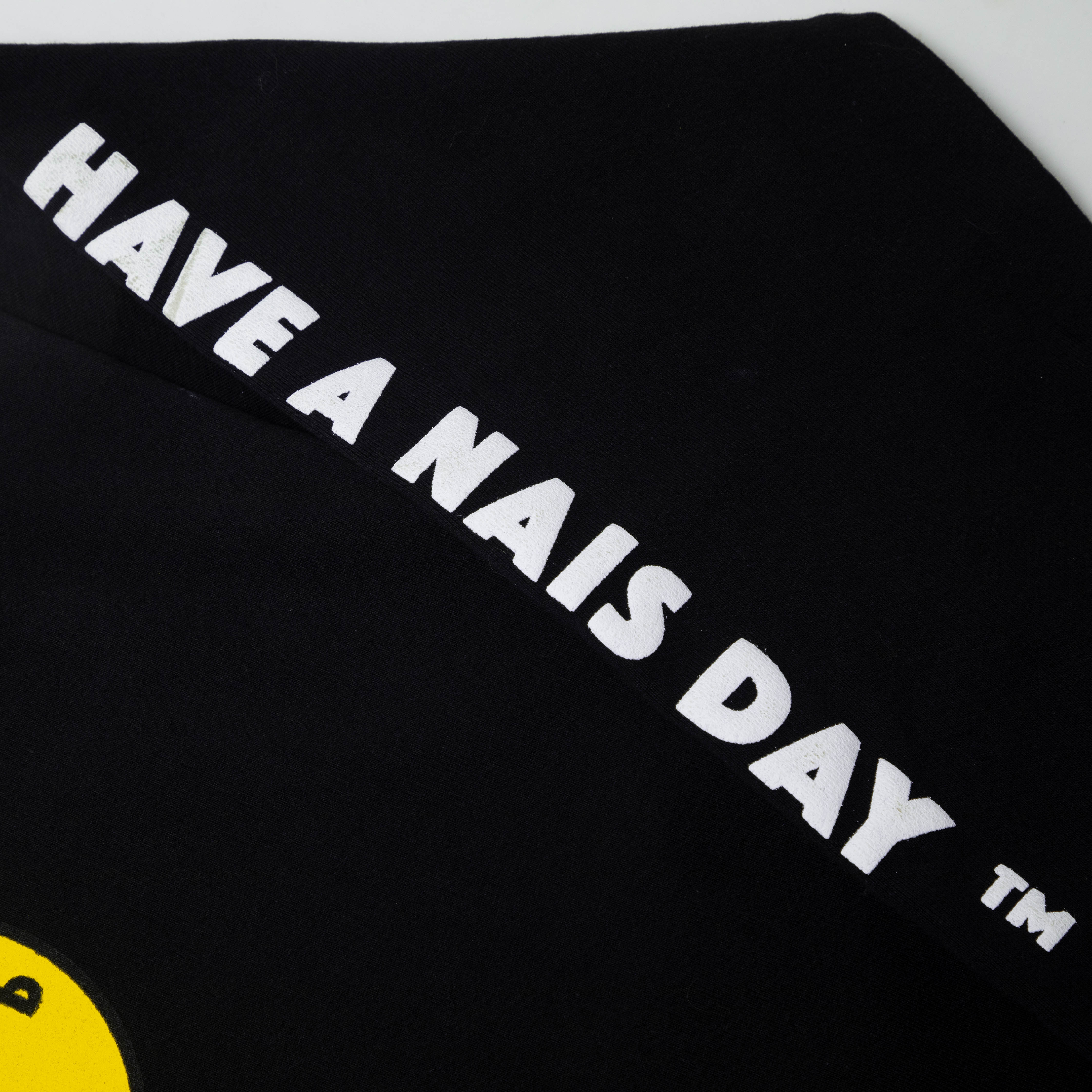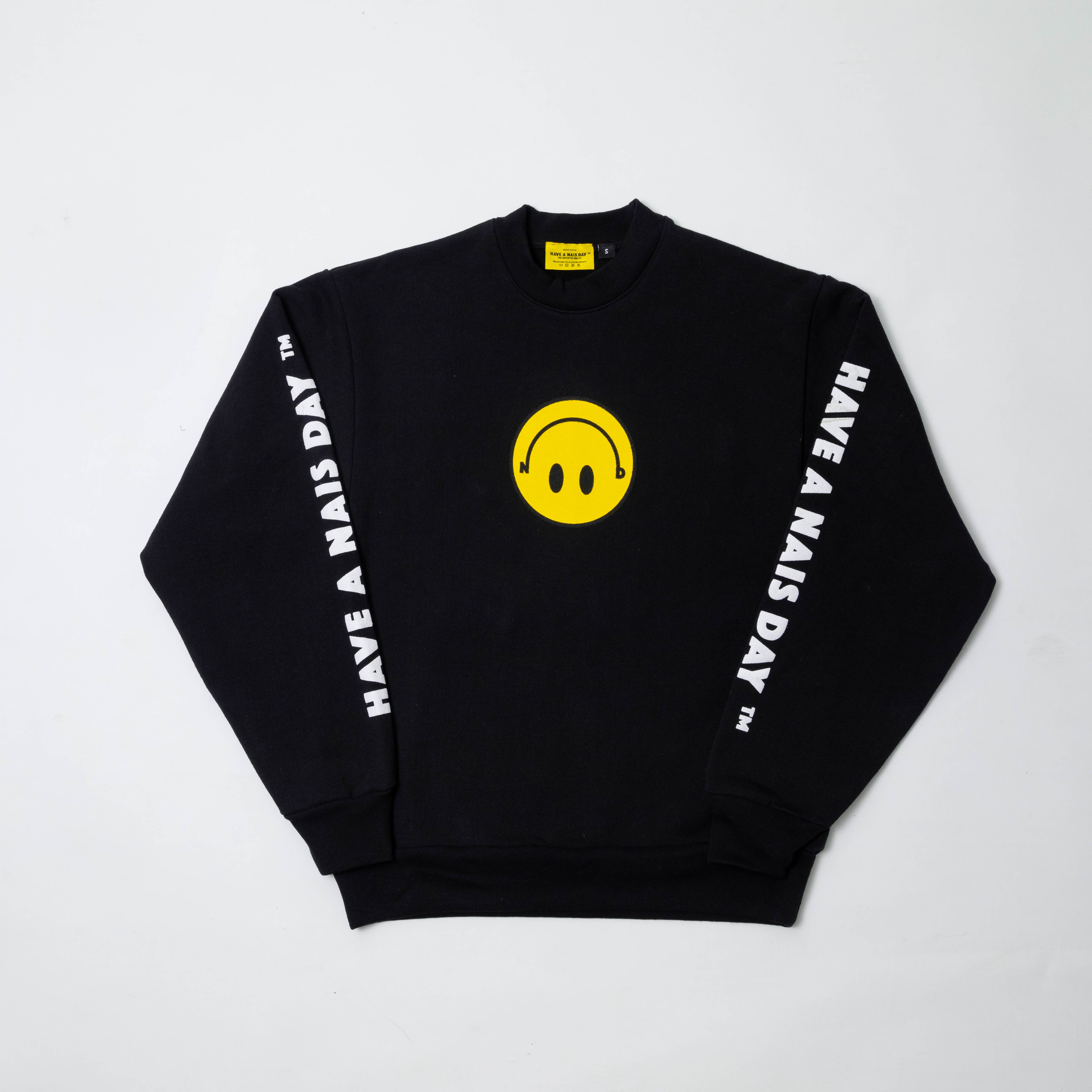 Stay cozy and stylish with our Nais Crewneck. Crafted from premium cotton, this crewneck features a bold screen printed inverted smiley logo on the front and puff printed "Have A Nais Day" logos on the sleeves. With its comfortable fit and timeless design, it's the perfect addition to your wardrobe.